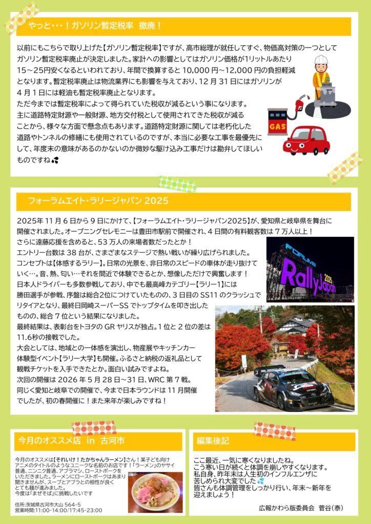 となります。暫定税率廃止は物流業界にも影響を与えており、12月31日にはガソリンが