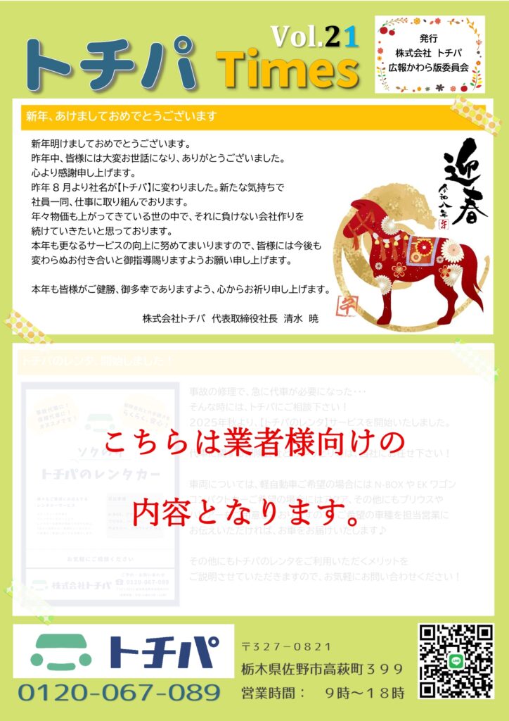 昨年8月より社名が【トチパ】に変わりました。新たな気持ちで